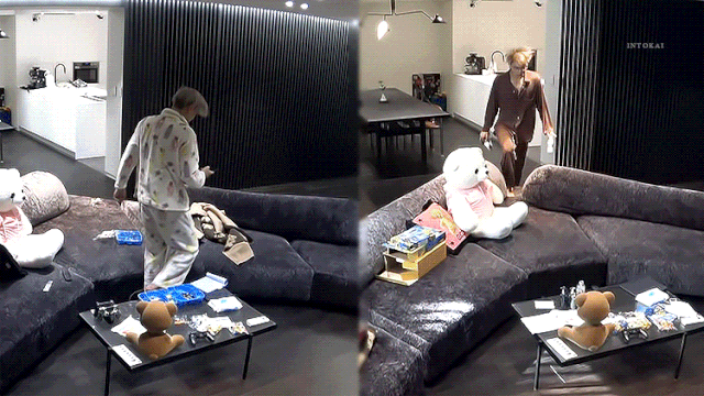 穿着睡衣,乱七八糟的头发,原来偶像在家也是这个样子↓