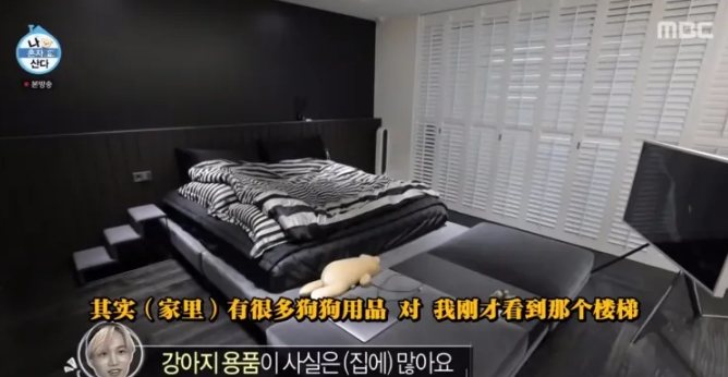 哦对了,还有这个小楼梯,是KAI专门为自己的狗狗准备的,让它可以轻松爬上自己的床。